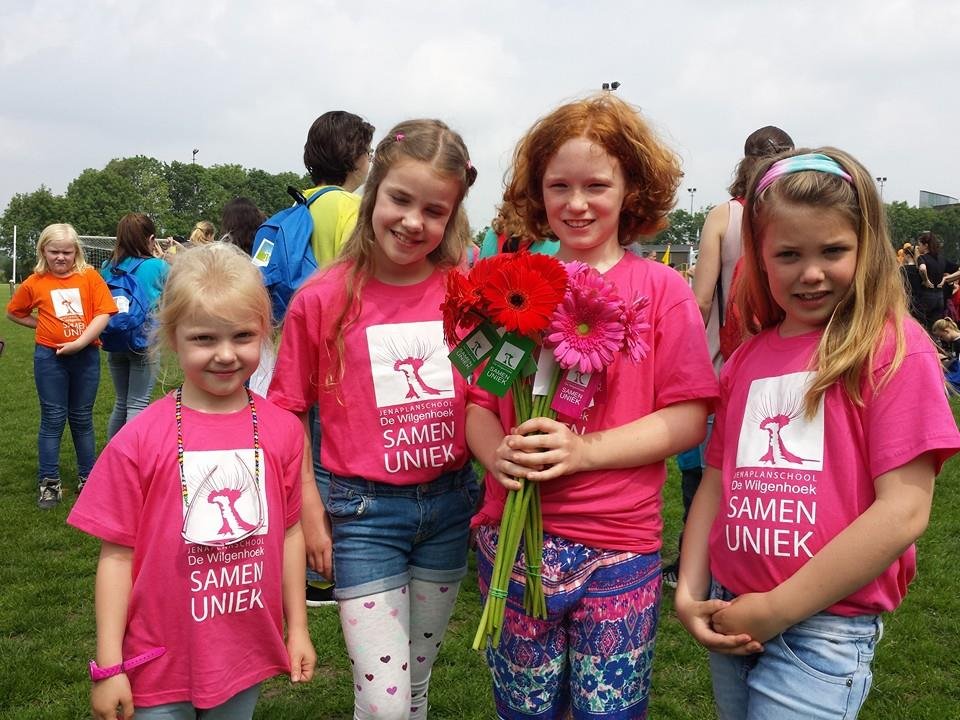 Samen uniek: het motto van De Wilgenhoek.Verschillende kinderen met verschillende behoeftes en talenten.Ieder kind is uniek en mag op zijn eigen manier of op zijn eigen tempo zich ontwikkelen. Maar elk kind staat niet alleen. Samenwerken met kinderen van alle leeftijden op school heeft een belangrijke plek in ons onderwijssysteem. Vandaar is ons motto: Samen uniek. Dit komt ook terug in alle gekleurde handjes: elk kind een eigen kleur, een eigen profiel, maar we doen het wel samen en niet alleen.